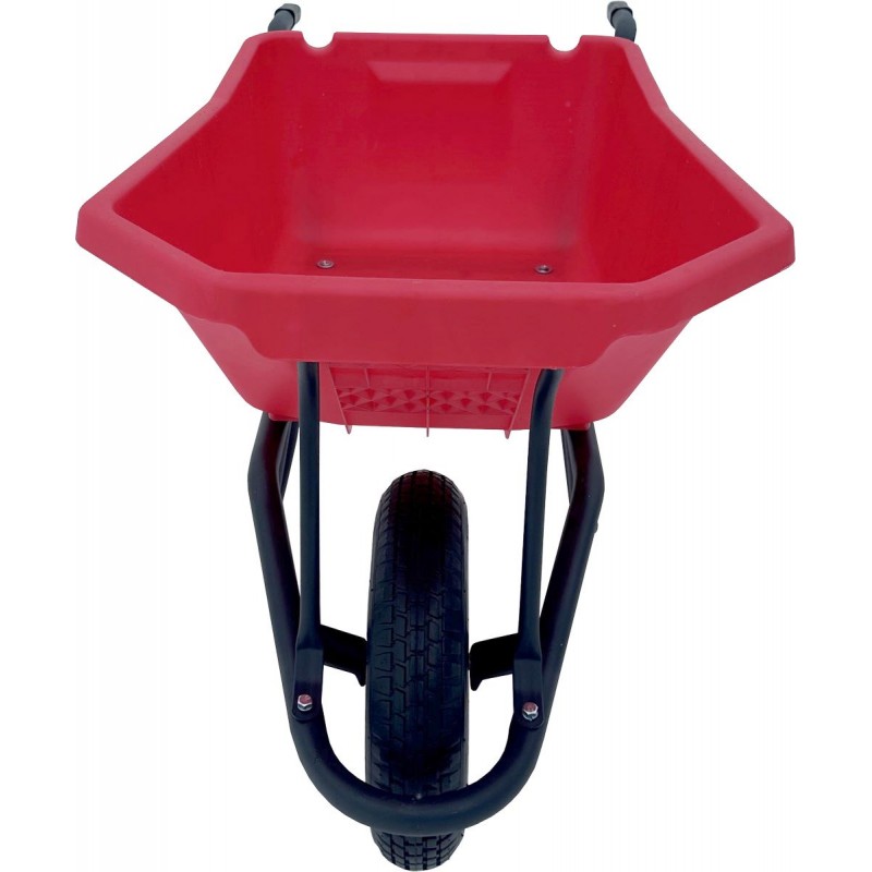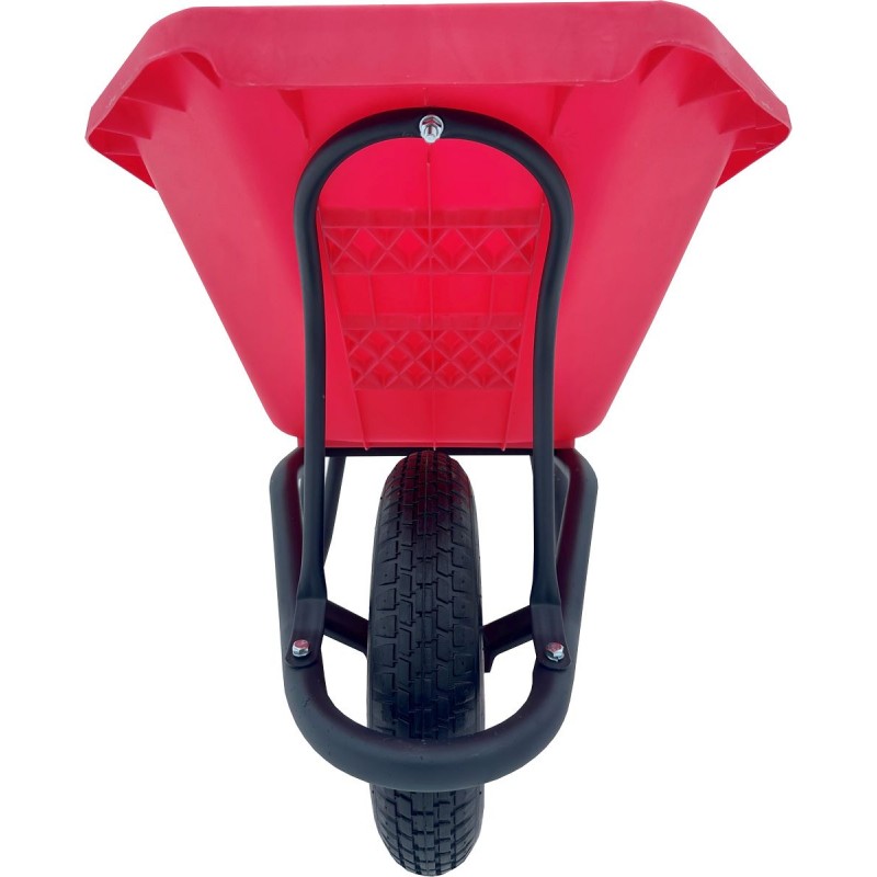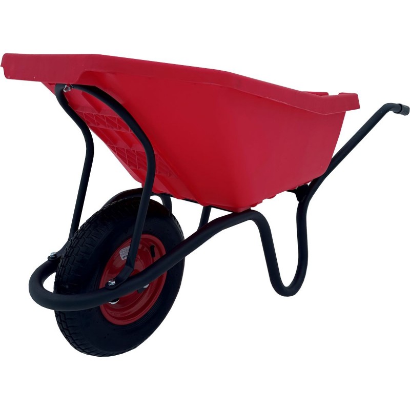 Корыто объемом 120 литров изготовлено из ударопрочного пластика яркого цвета, который не выцветает на солнце и устойчив к механическим повреждениям. Пластик не ржавеет, легко моется от бетона и грязи, а также имеет гладкую поверхность, облегчающую выгрузку налипших материалов. Производитель дает гарантию на кузов 5 лет.