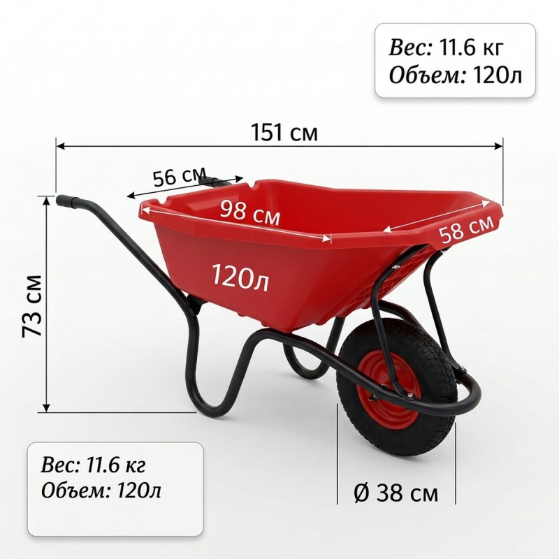 • Объем корыта: 120 л — оптимальный выбор для строительных и садовых работ.