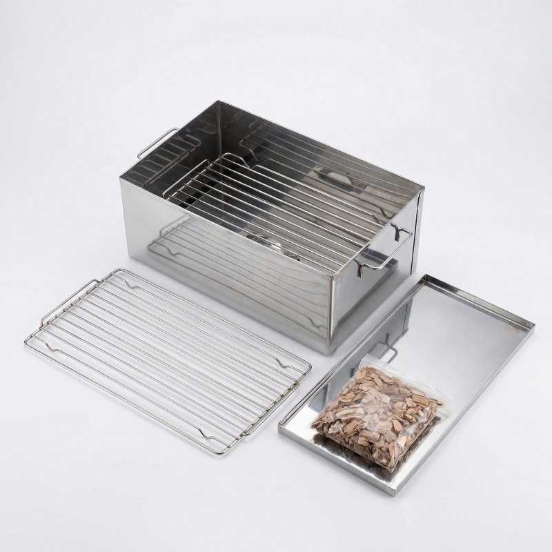 Коптильня Ольховый дым Классик 400х300х200 – это отличное решение для тех, кто предпочитает готовить копченую продукцию методом горячего копчения. Корпус данного оборудования выполнен из нержавеющей стали – наличие герметичной крышки позволяет легко приготовить любую еду, сохраняя ее питательные качества. С помощью поддона можно легко собрать лишний жир, что существенно упрощает чистку внутренней конструкции. Дополнительно в комплект входит ольховая щепа для копчения и транспортировочная сумка.